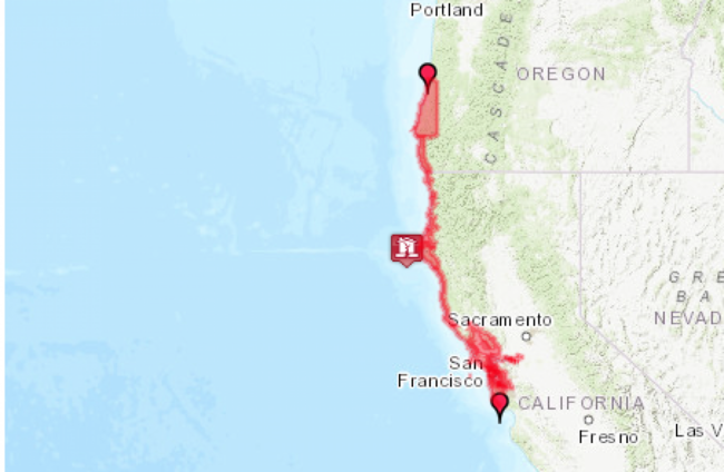 The warning has been place after a powerful earthquake struck off the coast of California, US seismologists have said.