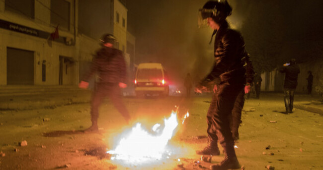 Tunisia Protests Riot police clash with demonstrators during anti-government protests in Tebourba, south of Tunis, Tunisia last night. Amine Landoulsi / AP/Press Association Images Amine Landoulsi / AP/Press Association Images / AP/Press Association Images