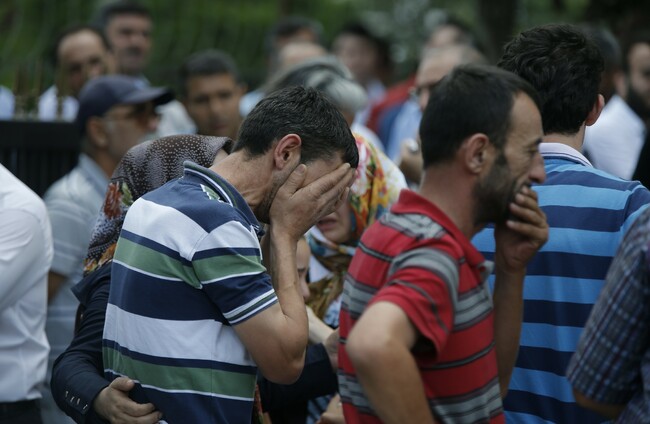 Family members of victims gather outside the Forensic Medical Centre in Istanbul. Emrah Gurel