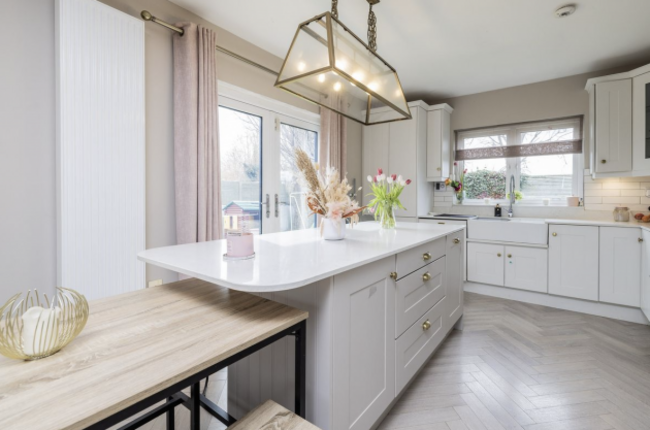 This beautifully upgraded four-bed with three bathrooms is ideally nestled in a cul-de-sac in Swords. Combining modern design, energy efficiency and smart technology, this 120 m² turnkey property is perfect for families as well as professionals. The spacious interior includes a bright living room with a stylish fireplace and an open plan kitchen with dining area and underfloor heating, Italian tiles and French doors leading to a sunny, south-facing garden.