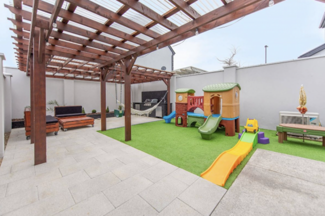 The home is energy-efficient thanks to an air-to-water heating system, solar panels and high-grade insulation. Outside, enjoy a landscaped, low-maintenance garden with astroturf, a stylish pergola and even a fully equipped outdoor kitchen. Off-street parking, an EV charging point, and proximity to Oranmore’s shops, cafés and green spaces complete this turnkey offering in a vibrant, family-friendly development.