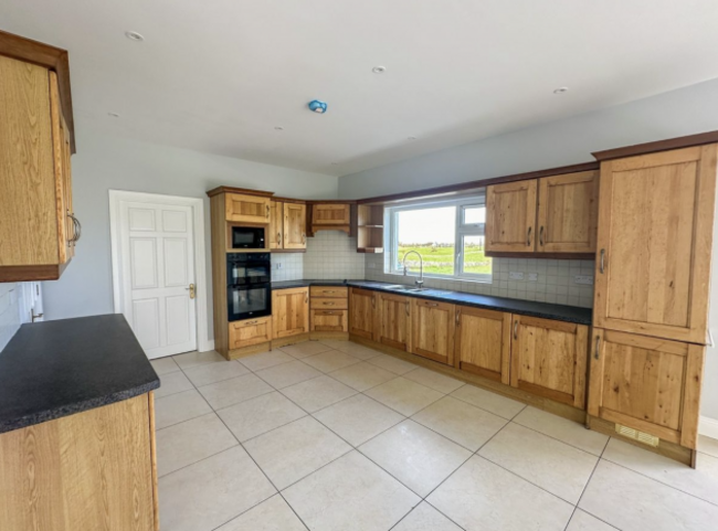 This eye-catching four-bed detached home in Derrylissane is set on an impressive 3.6 acre site. The property has breathtaking countryside views in a peaceful, idyllic setting just 2.4km from Menlough Village and within easy reach of Mountbellew, Ballinasloe and Galway city. Spanning about 260 m², the home offers bright, spacious living throughout, including two elegant sitting rooms, a large open plan kitchen with dining area, sunroom, and office