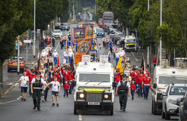 Traditionally, parade participants congregate at fields where they hear speeches and prayers delivered by senior Orangemen before a return march, but that did not happen this year.