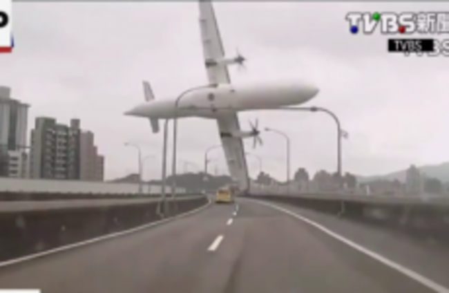 The TransAsia ATR 72-600 crashed shortly after take-off from Songshan airport in Taipei Wednesday, hitting an elevated road as it banked sidelong towards the Keelung River, leaving a trail of debris including a smashed taxi.