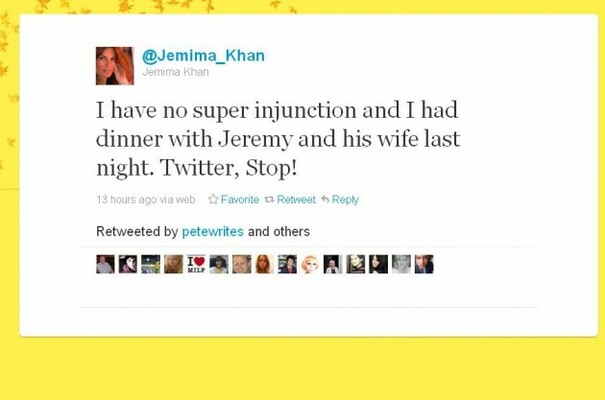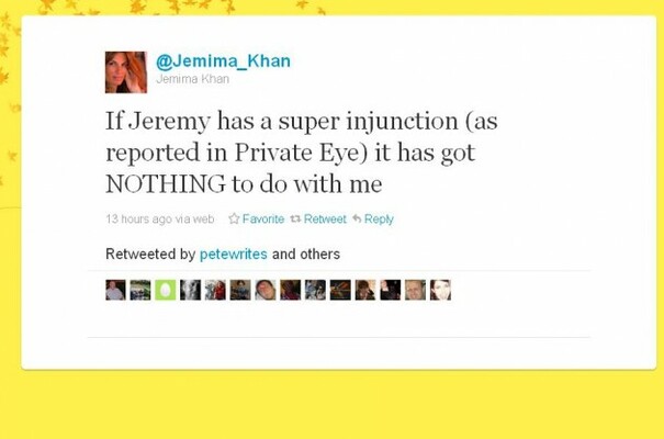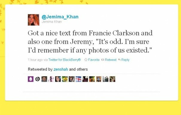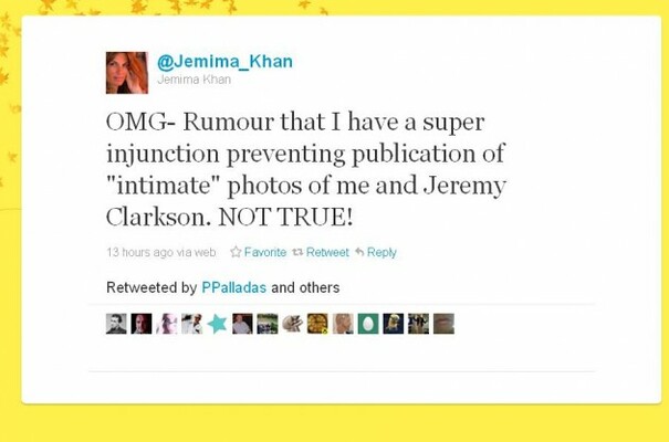 The human rights campaigner and sometime journalist Jemima Khan has already tweeted to insist that rumours of her having a super-injunction in place to prevent publication of “intimate” photos of her and Top Gear presenter Jeremy Clarkson are not true: