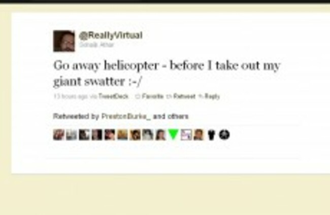Initially annoyed by the noise, Athar simply tweeted: “Go away helicopter – before I take out my giant swatter :-/”. Athar continued to tweet as events unfolded – until the realisation that one of the most-wanted men on the planet has been tracked down and killed nearby…