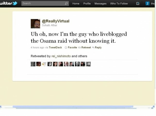 Twitter user inadvertently live-blogs deadly attack on Bin Laden