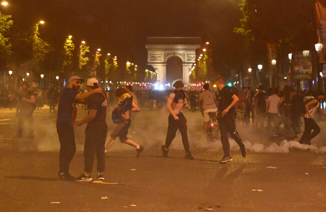 Overnight, AFP journalists saw police on the famed thoroughfare using a water cannon to stop a crowd reaching the Arc de Triomphe, which sits at the top of the Champs-Elysees.
