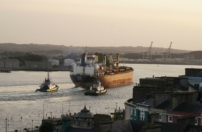 MV Matthew is escorted into Cobh in Cork by the Irish Navy Alamy Stock Photo