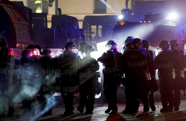 Police fired tear gas for a third night yesterday to disperse protesters who had gathered outside Kenosha’s courthouse, where some shook a protective fence and threw water bottles and fireworks at officers lined up behind it. Police then used armoured vehicles and officers with shields pushed back the crowd when protesters ignored warnings to leave a nearby park.