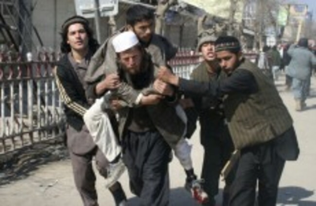 Afghans carry a wounded man during an anti-US demonstration in Kunduz, north of Kabul, Afghanistan Obaid Ormur/AP/Press Association Images