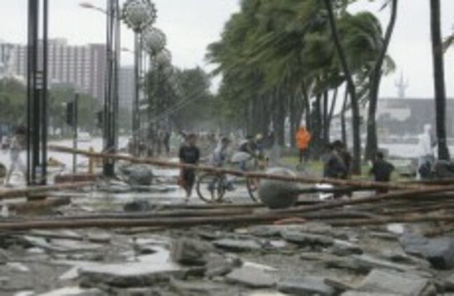 Debris litter near the seawall at the scenic Roxas boulevard in Manila. AP Photo/Bullit Marquez