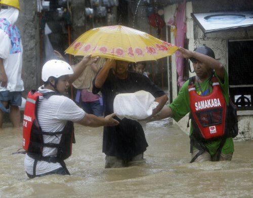 On Monday, Manila held two-year commemorations for the nearly 500 people killed during a 2009 cyclone. Some residents acted more quickly this time to evacuate homes as waters rose. People escaped the swelling river by flocking to schools and other temporary evacuation sites.
