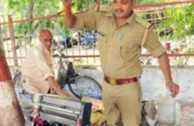 The photograph of the officer harassing Kishan Kumar, who makes a living as a streetside typist in the northern city of Lucknow, provoked an outpouring of sympathy from Indians outraged at his treatment.