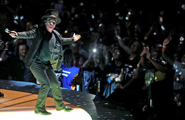 Bono performs at the U2 eXPERIENCE + iNNOCENCE Tour at London's O2 Arena. Andrew Matthews