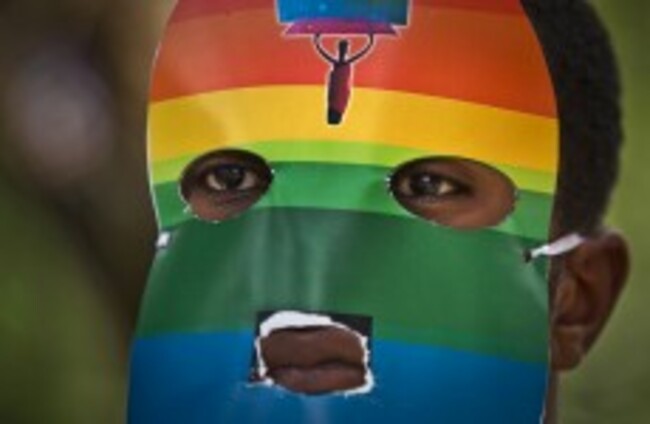 A person wears a mask as Kenyan gays and lesbians protest against Ugandan laws AP Photo/Ben Curtis