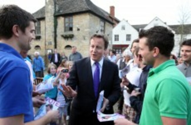 David Cameron hands out NO-to-AV leaflets in Oxfordshire ahead of Thursday's referendum. Steve Parsons/PA Wire