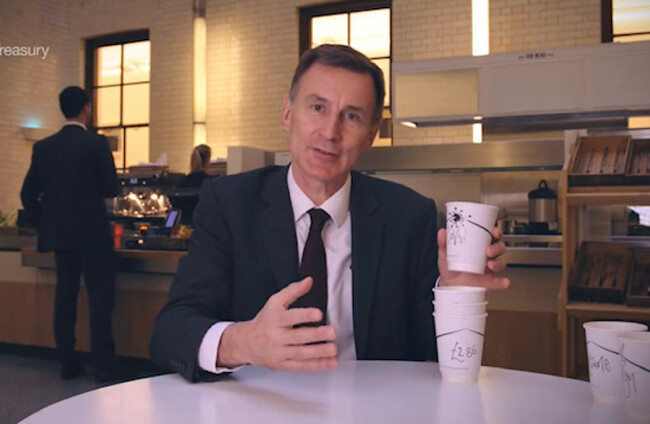THE UK CHANCELLOR Jeremy Hunt has been mocked online over his attempt to explain rising inflation with a stack of empty coffee cups.