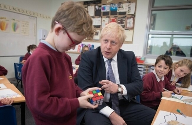 Prime Minister Boris Johnson during a visit to a school in Bathpool this week. PA Images