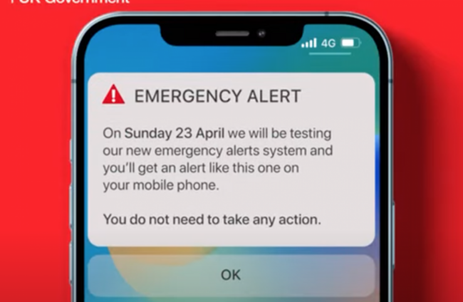 The alert will cause a loud siren to sound on people’s phone during the UK-wide test.