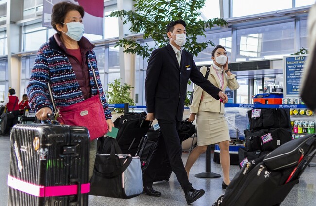 Korean travellers at an airport in San Francisco on Sunday. SIPA USA/PA Images