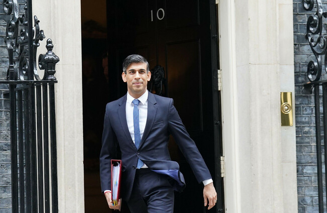 Rishi Sunak outside No. 10 Downing Street today in London. Alamy Stock