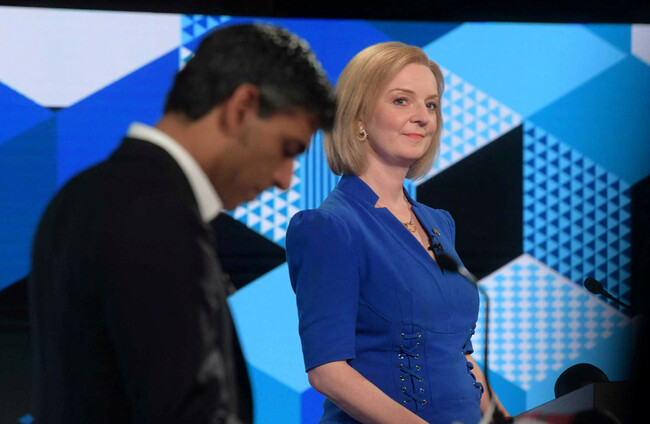 Rishi Sunak and Liz Truss in a debate organised by the BBC in England earlier this week. Xinhua News Agency/PA Images