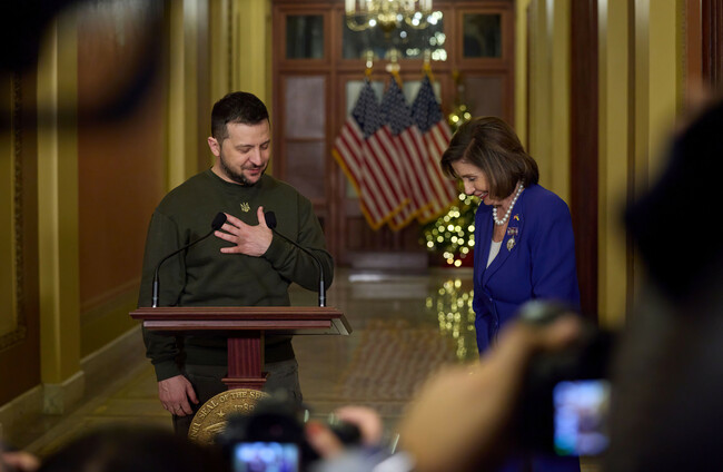 President Zelenskyy with US Speaker of the House Nancy Pelosi in December. Alamy Stock Photo