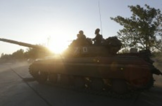 Members of the Ukrainian army ride on tanks in the port city of Mariupol on Friday. Sergei Grits/AP/Press Association Images