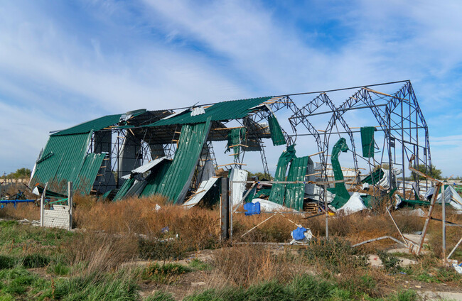 A destroyed farm building in Ukraine Alamy Stock Photo