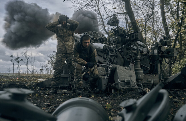 Ukrainian soldiers fire at Russian positions from a U.S.-supplied M777 howitzer in Ukraine's eastern Donetsk region. AP/PA Images