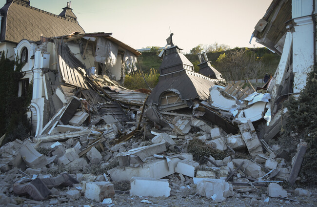 A hotel is destroyed by a missile in Odessa. Max Pshybyshevsky/PA
