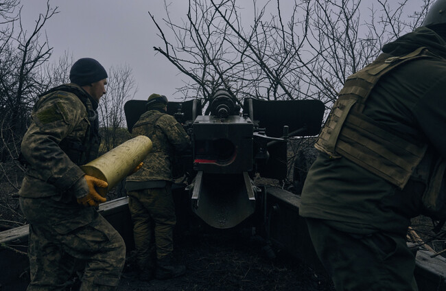 Ukrainian soldiers fire an artillery at Russian positions near Bakhmut, Donetsk region. AP/PA Images