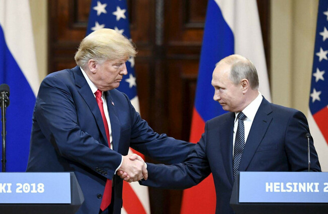 Trump and Putin meet at the 2018 Helsinki summit. Alamy Stock Photo