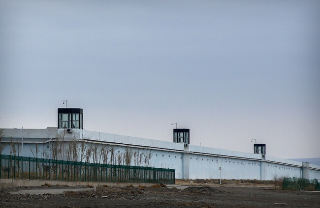 Guard towers stand on the perimeter wall of the Urumqi No. 3 Detention Center in Dabancheng. Mark Schiefelbein