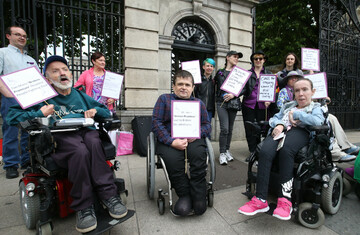 Protesters outside Leinster House last year who claim the government has broken its promises to disabled people by not ratifying the UN Convention on Rights for Disabled people. Sam Boal
