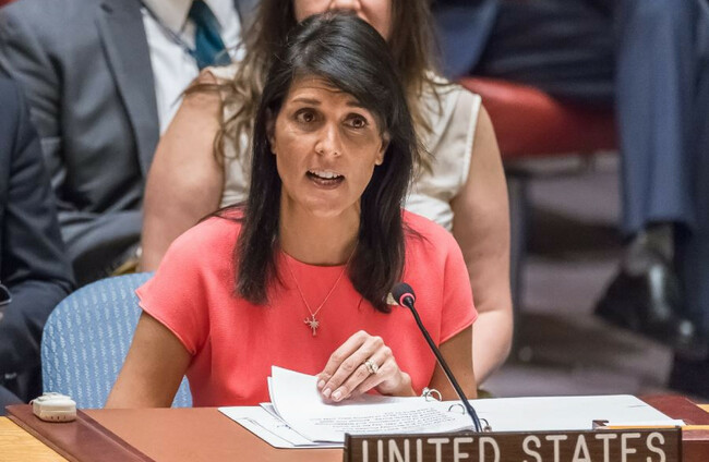 US Ambassador to the UN Nikki Haley addressing the UN Security Council in New York yesterday Albin Lohr-Jones/SIPA USA/PA Images