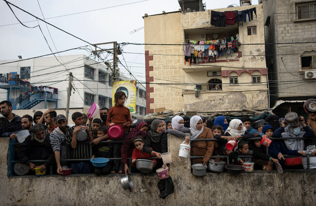 Palestinians line up for a free meal in Rafah, Gaza Strip Alamy Stock Photo