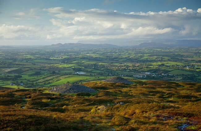 The passage tomb landscape of Co Sligo features stone monuments like upland cairns and megalithic tombs.