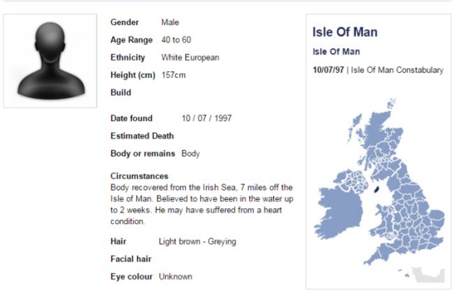The site also includes a case history for the unidentified person based on the police investigation into the discovery of their body in the hope that additional information could trigger recognition.