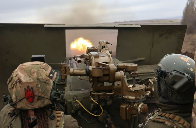 Ukrainian soldiers fire at the frontline near Bakhmut, Donetsk region, Ukraine, Saturday, 18 March.
