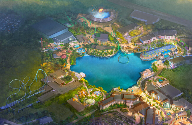 Plans for the site include a theme park, featuring several themed lands, a 500-room hotel and a retail, dining and entertainment complex.