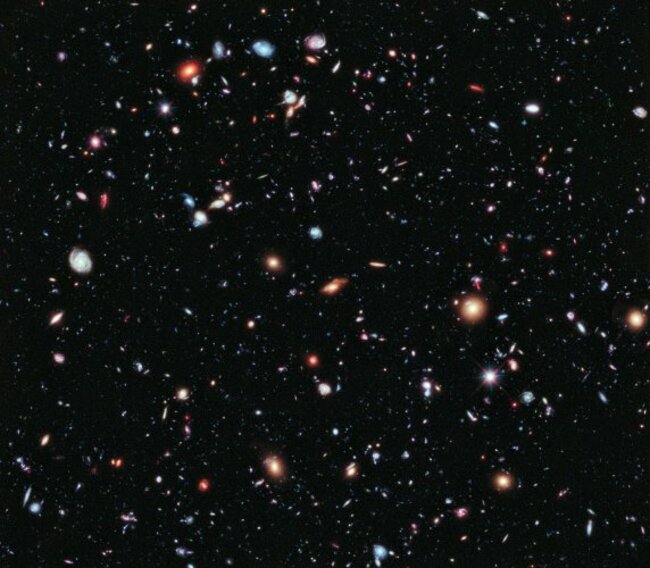 This image, called the Hubble eXtreme Deep Field (XDF), combines Hubble observations taken over the past decade of a small patch of sky in the constellation of Fornax. With a total of over two million seconds of exposure time, it is the deepest image of the Universe ever made, combining data from previous images including the Hubble Ultra Deep Field (taken in 2002 and 2003) and Hubble Ultra Deep Field Infrared (2009).