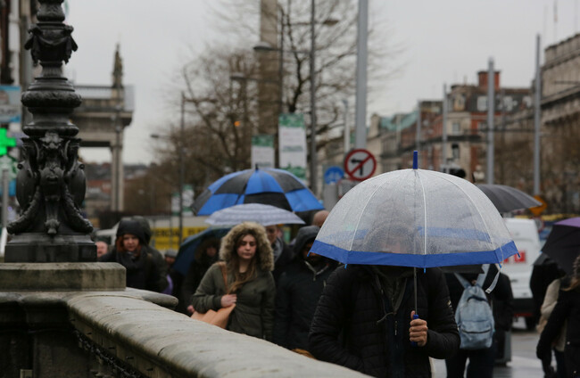 A rainy day in Dublin as umbrella come out against the wet weather (file image)