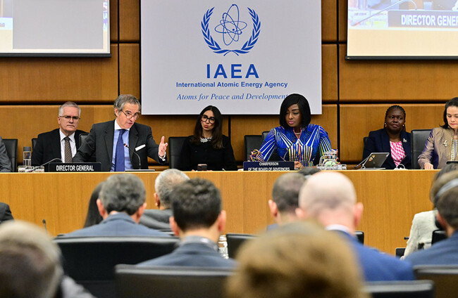 Rafael Mariano Grossi, Director General of the International Atomic Energy Agency, delivers his remarks at the opening of the Board of Governors meeting held at the Agency headquarters in Vienna, Austria today. D.Calma/IAEA