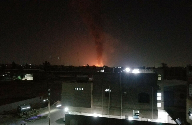 Photo taken on a mobile phone shows smoke rising after US-led airstrikes in Sanaa, Yemen, yesterday Alamy Stock Photo
