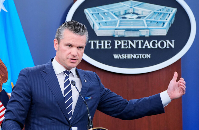 Defence Secretary Pete Hegseth speaks during a news conference at the Pentagon in Washington. Alamy