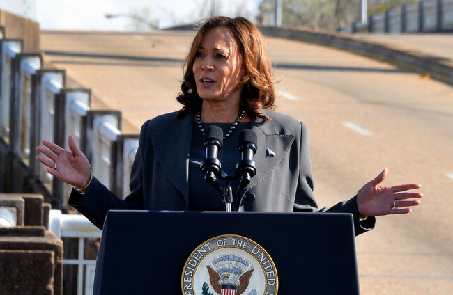 US vice president Kamala Harris during her speech in Selma, Alabama, yesterday.