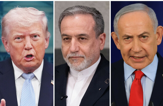 US president Donald Trump, Iranian foreign minister Abbas Araghchi and Israeli prime minister Benjamin Netanyahu. Alamy Stock Photo