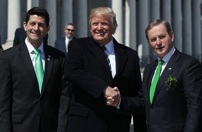 House Speaker Paul Ryan, US President Donald Trump, and former Taoiseach Enda Kenny on St Patrick's Day last year.